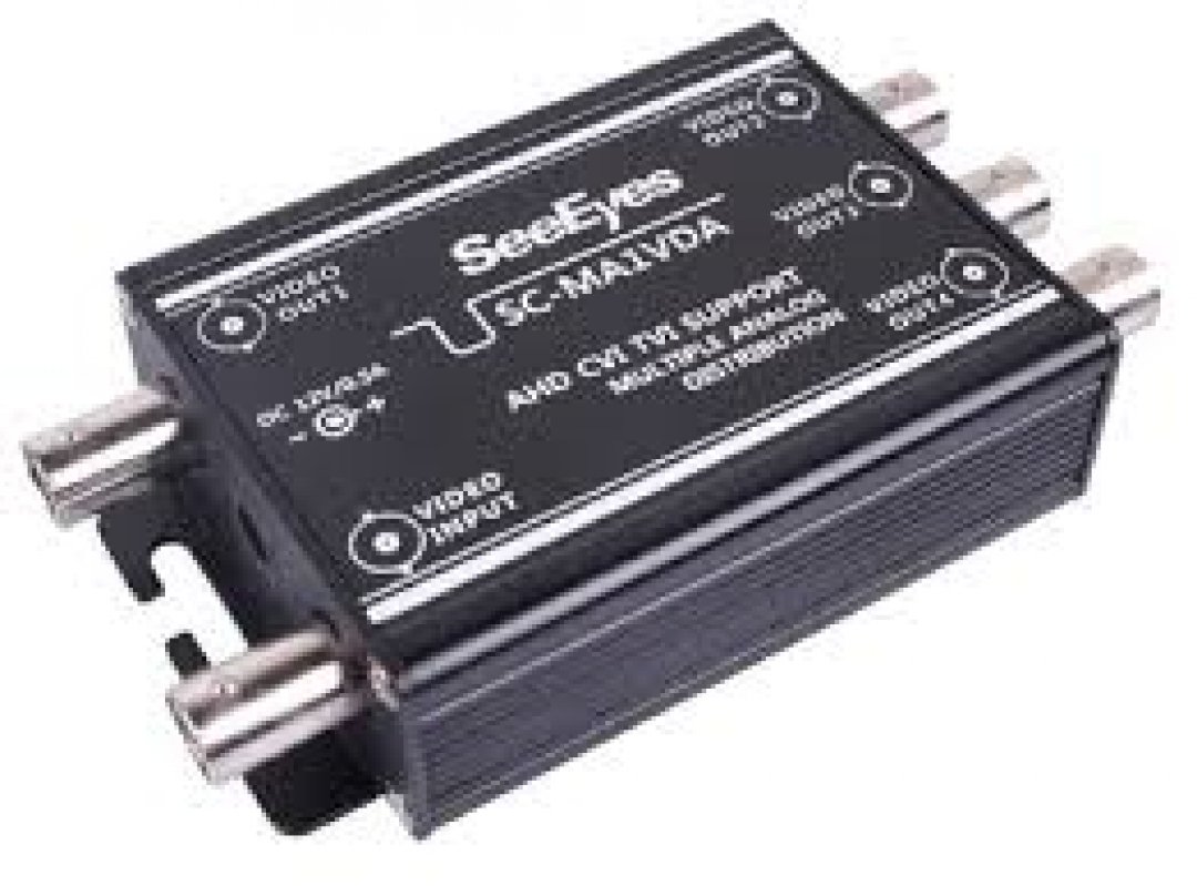 Padalina vieną CVI/TVI/AHD/Analog vaizdo signalą į keturis. galima naudoti kaip retransliatorių. Komplekte nėra maitinimo šaltinio.