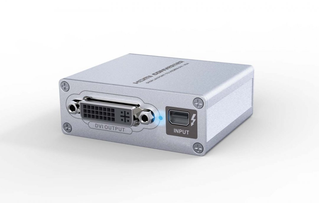 Šis įrenginys Mini DP (thunderbolt / mini display port) jungties vaizdo signalą keičia į HDMI, VGA arba DVI vaizdo signalą.
